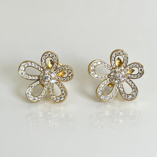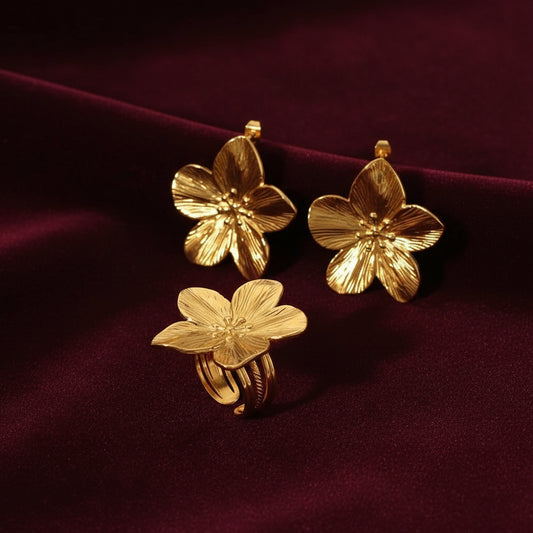 Set Ohrringe und Ring Vintage Blume vergoldet