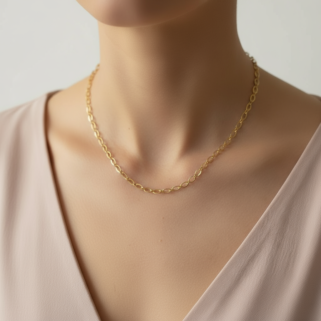 Die Halskette ist mit 14 Karat Gold vergoldet.