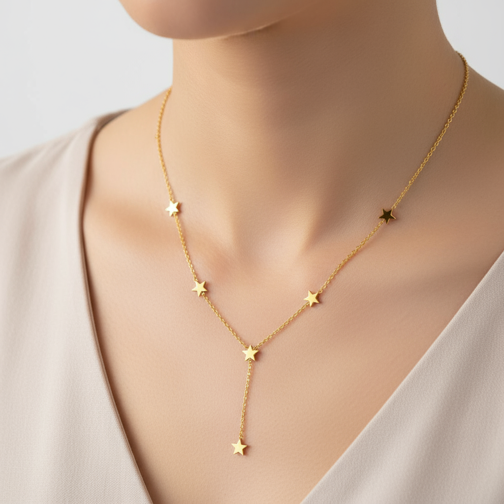 Y-Halskette mit Sternchen in 0,6 cm Größe.